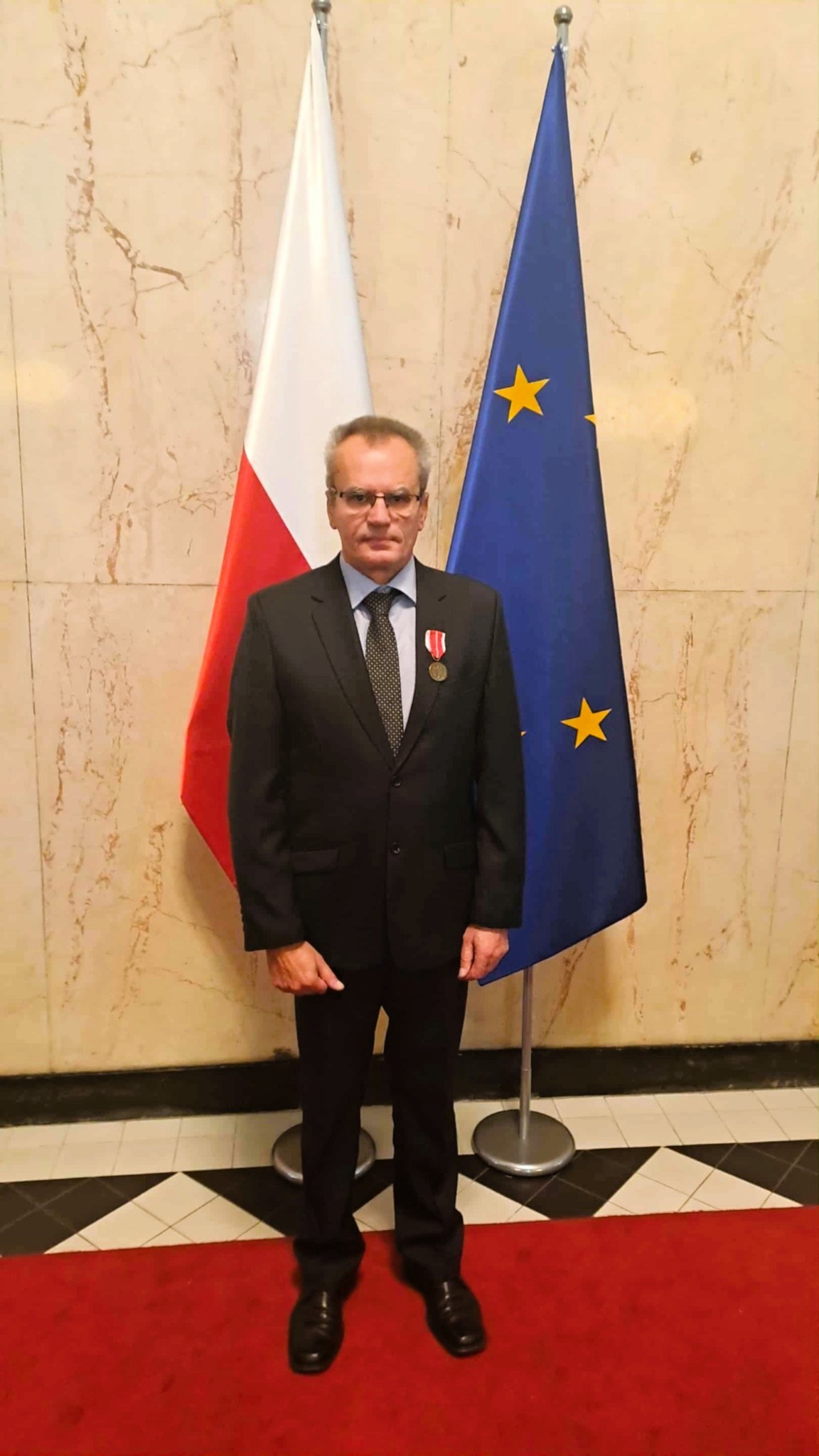 Pan Tomasz Morzyk odebrał medal z rąk Pani Aleksandry Dyli – Śląskiej Kurator Oświaty podczas uroczystości, która odbyła się 17 października 2025 r. w Sali Marmurowej Śląskiego Urzędu Wojewódzkiego w Katowicach.