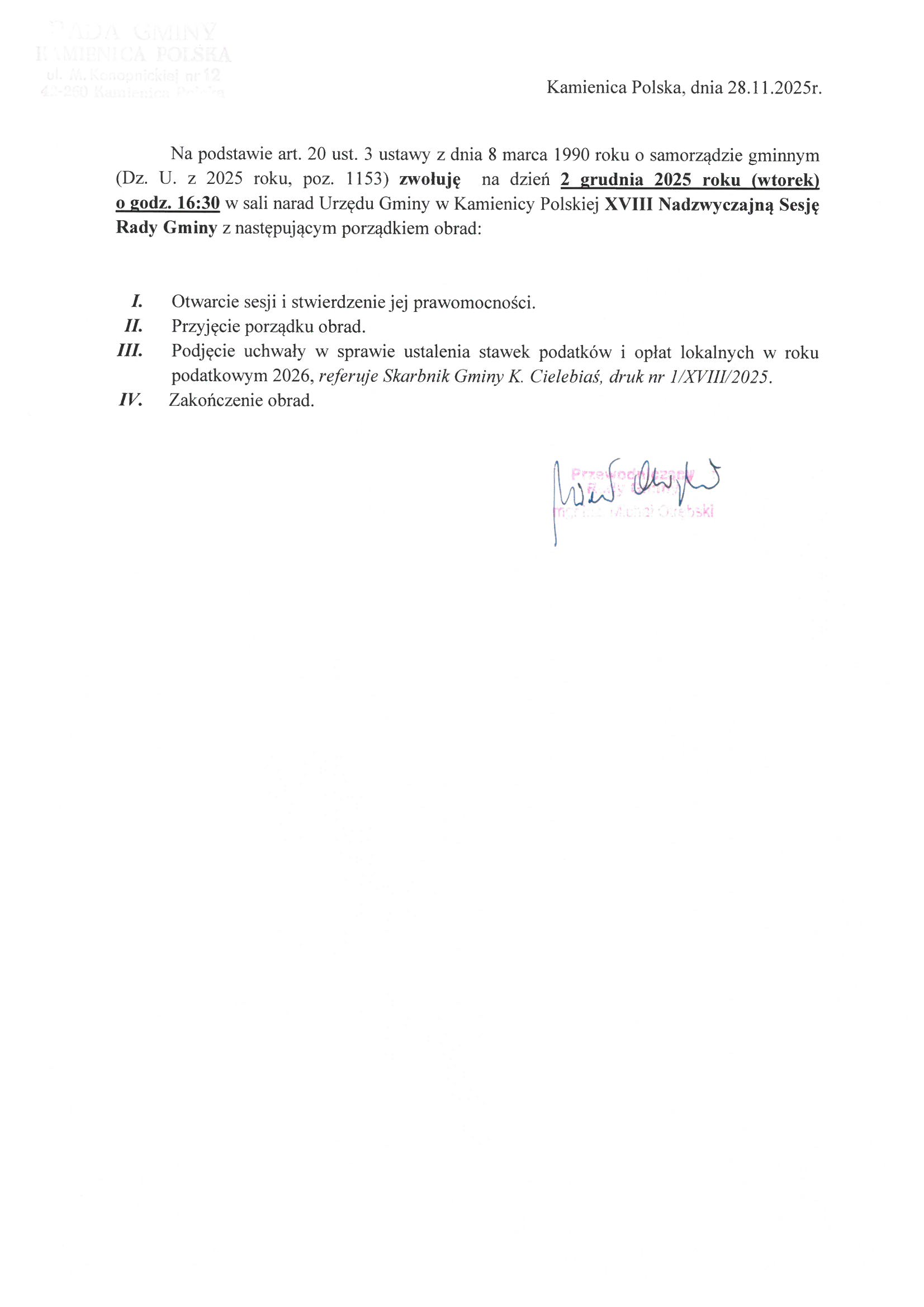 XVIII Nadzwyczajna Sesja Rady Gminy