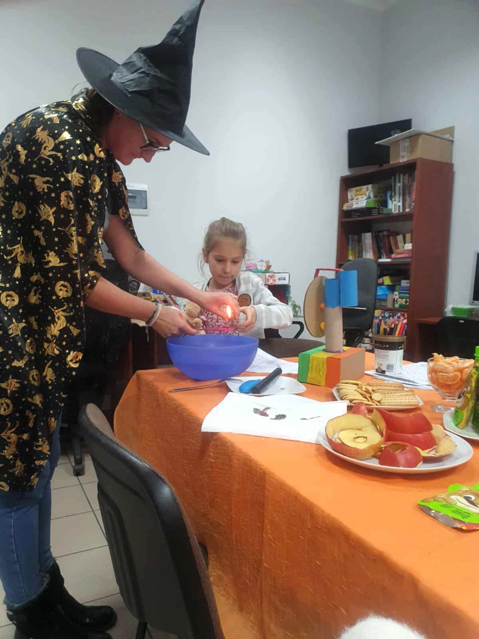 Podczas spotkania na Dzieci czekały andrzejkowe wróżby, zabawy oraz ciekawe konkursy, a jedną z największych atrakcji było spotkanie z „Prawdziwą Czarownicą”, która wprowadziła uczestników w magiczny klimat tego wyjątkowego wieczoru.