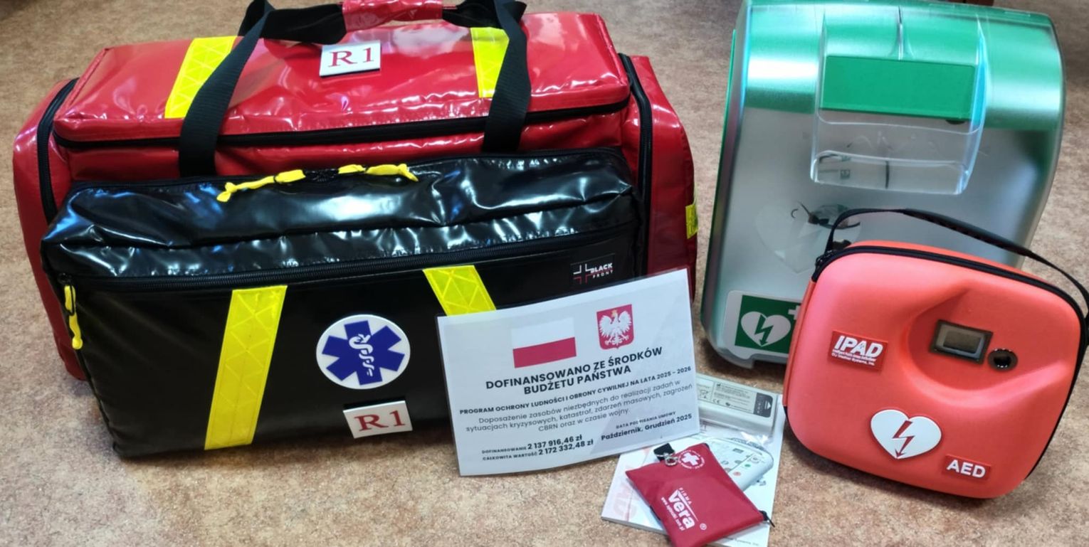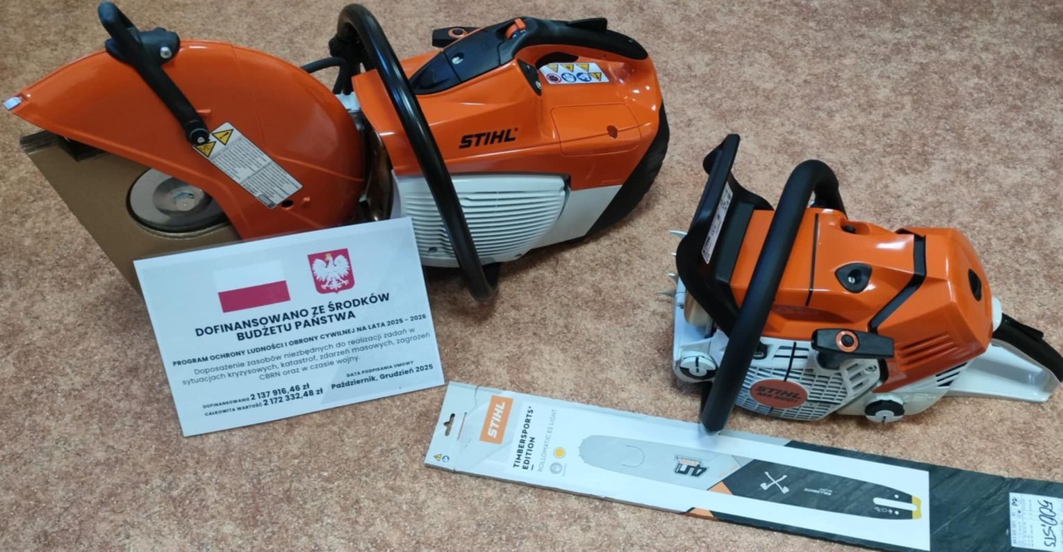 (zestawy ratownictwa medycznego, defibrylatory z kapsułą, pilarki spalinowe, przecinarki spalinowe, maski z filtropochłaniaczem),