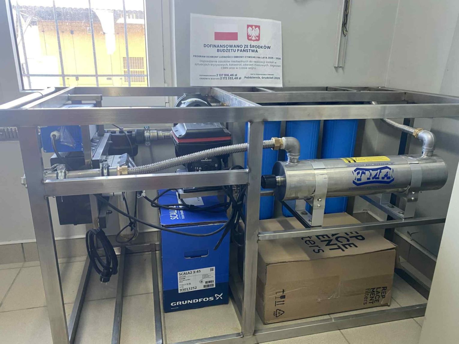 (zbiorniki na wodę pitną, mobilna stacja uzdatniania wody oraz paczkowarka do wody pitnej),