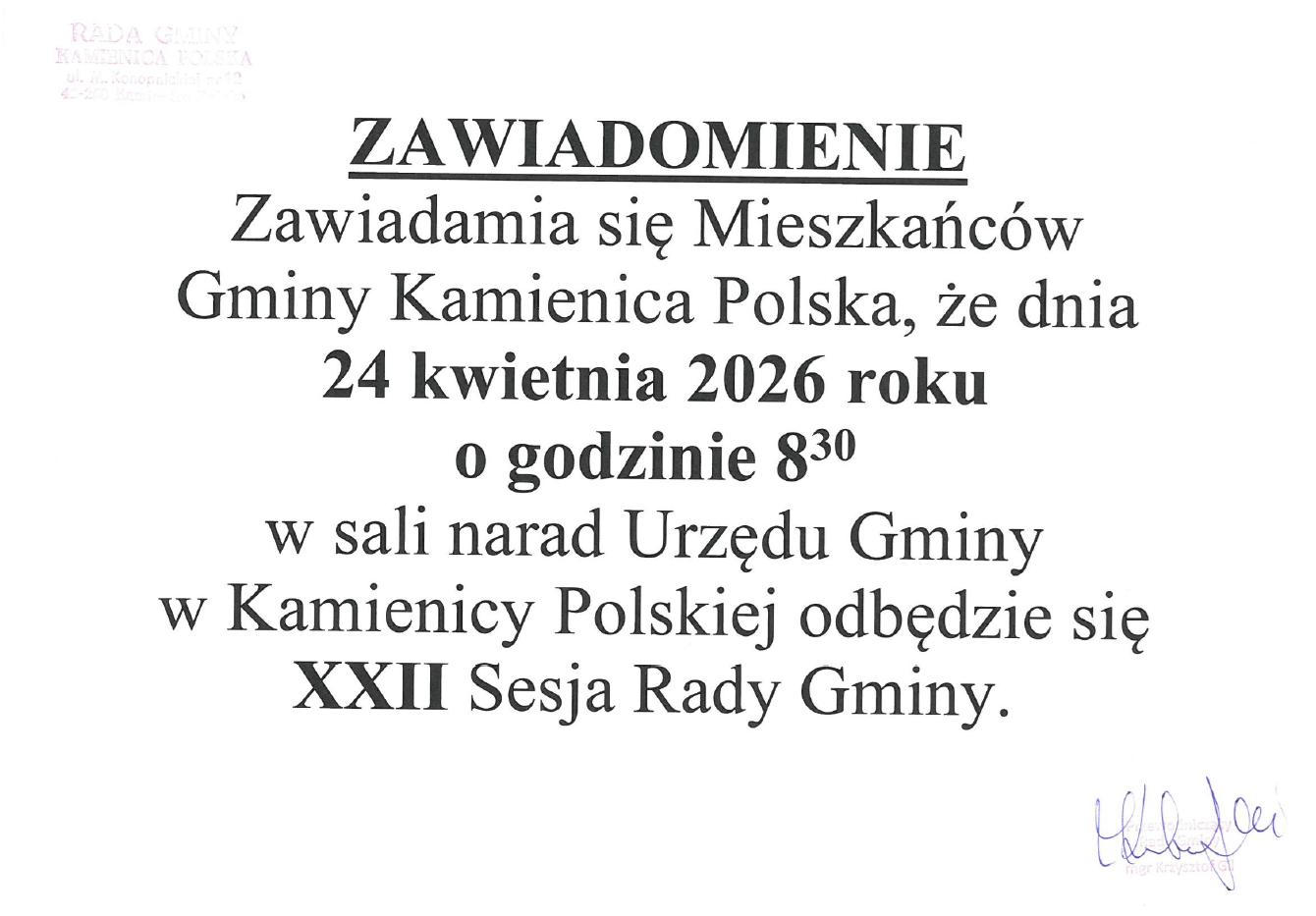 XXII Sesja Rady Gminy